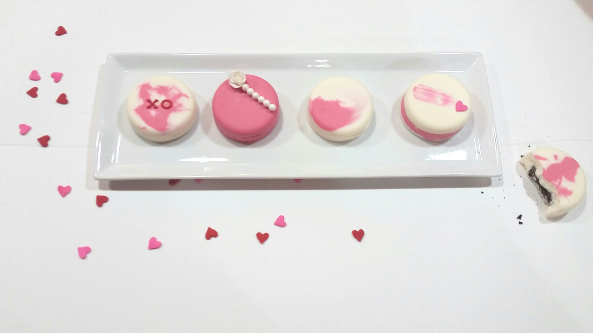 These oreos are a preview of the white, red, and pink flood of Valentine’s Day we are all about to experience. But chocolate covered oreos can be used for any occasion. Throwing a jungle themed baby shower? Sweet, swirl some green and browns and top with a candy leaf. Having a Shark Week-athon? Nice. Make some Blue oreos and top with a shark fin. Que scary music.